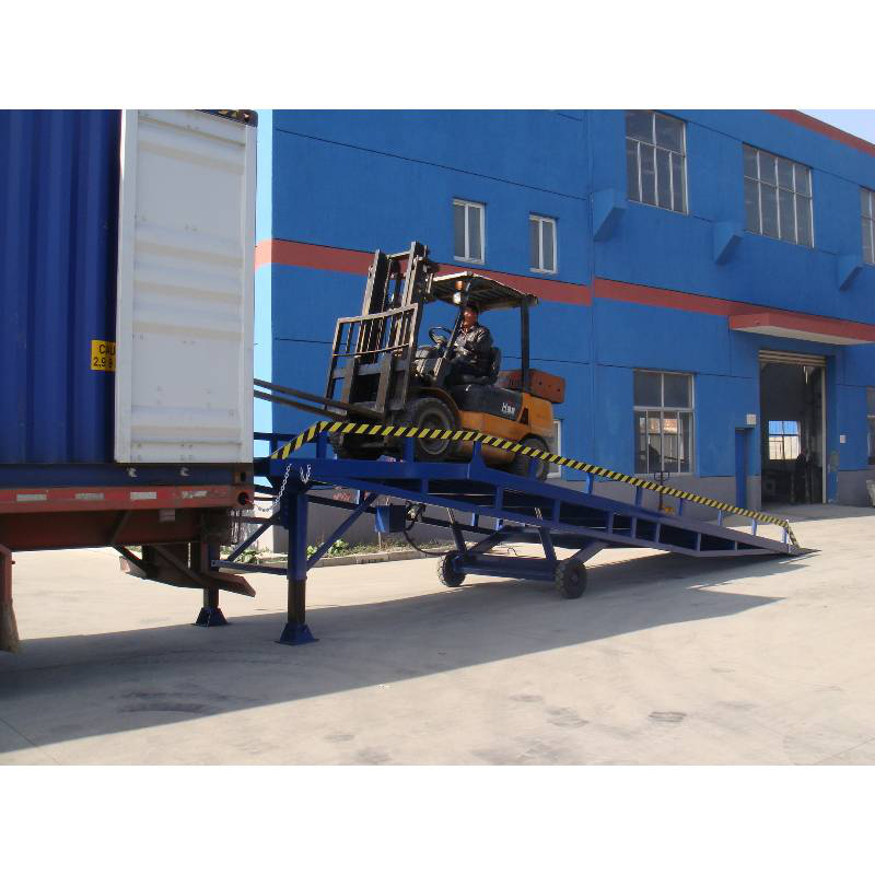 移動(dòng)式登車橋廣泛用于無裝卸設(shè)備的貨臺(tái)及流動(dòng)裝卸場(chǎng)所,是與叉車配合使用的貨物裝卸輔助設(shè)備。借助移動(dòng)式登車橋,叉車能直接駛?cè)肫嚰b箱內(nèi)部進(jìn)行批量裝卸作業(yè)。只需單人操作,不需動(dòng)力電源,即可實(shí)現(xiàn)貨物的安全快速裝卸